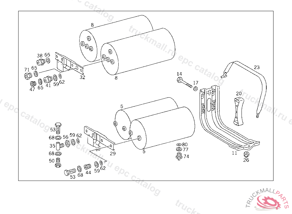 RESERVOIR COMPRESSED AIR 30 L, TO VOSS 232,5 9363665 812731 FOR VEHICLES WITH VOSS 230 CONNECTOR: ADD. MOUNT FITTING "A 004 997 82 72" WITH O-RING "A 000 987 04 46" AND THRUST RING "A 000 997 02 03" TO AIR RESERVOIR
