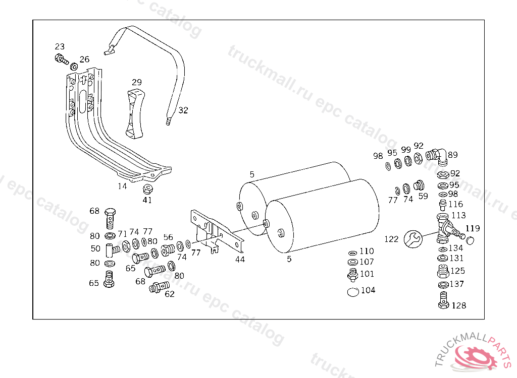 RESERVOIR COMPRESSED AIR 30 L, TO VOSS 232,5 9363665 812731 FOR VEHICLES WITH VOSS 230 CONNECTOR: ADD. MOUNT FITTING "A 004 997 82 72" WITH O-RING "A 000 987 04 46" AND THRUST RING "A 000 997 02 03" TO AIR RESERVOIR