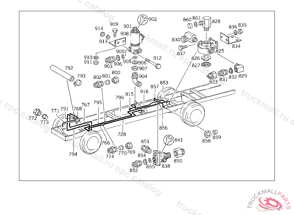 LINE FROM HAND BRAKE VALVE TO RELAY VALVE, USED WITH HYDRAULIC BRAKE,UP TO CHASSIS A 059728 EXCEPT FOR: A 059166,A 059217,A 059218,A 059268,A 059276,A 059356-A 059359,A 059411,A 059418,A 059419,A 059525,A 059526,A 059594,A 059613, A 059625,A 059626,A 059647,A 059648.