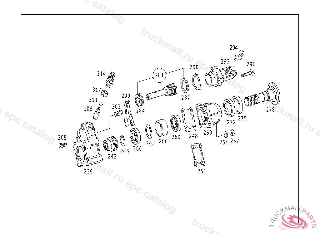 TRANSMISSION CASE COVER SHIFT CASE, FOR COMPONENT PARTS SEE SPARE PARTS LIST